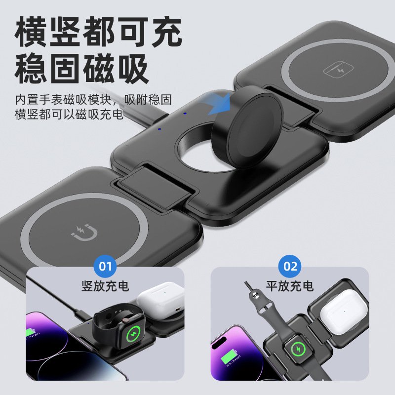 Magsafe foldable magnetic 3-in-1 wireless charging holder